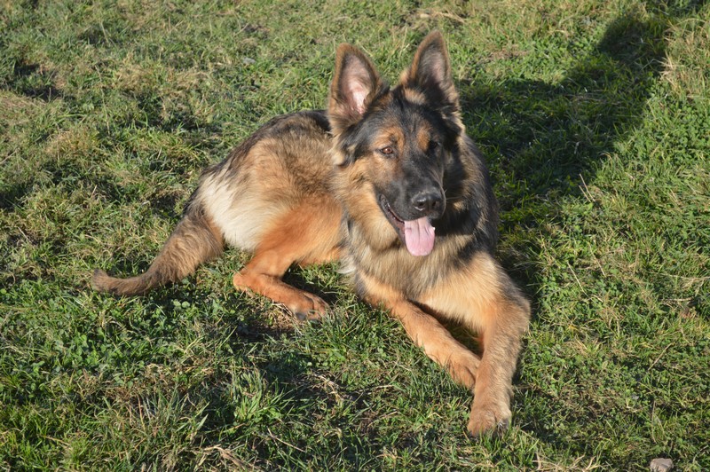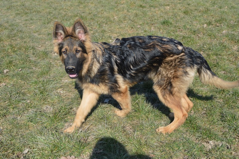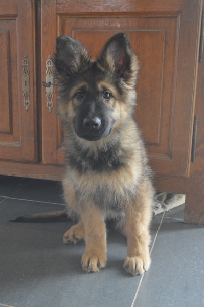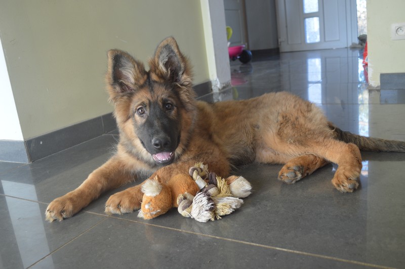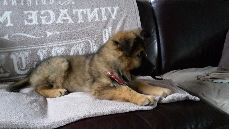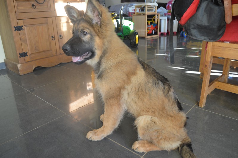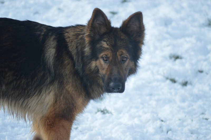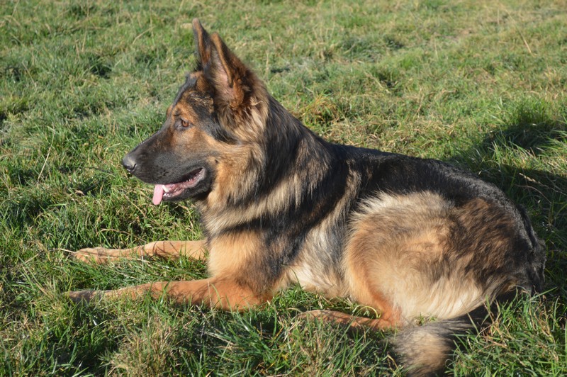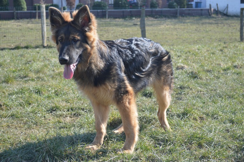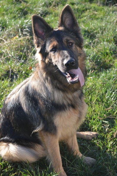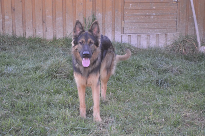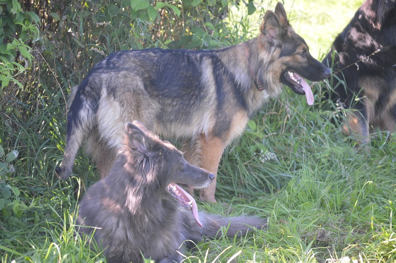 Notre Nessy ( et oui comme le monstre du Loch Ness) nous vient d’Allemagne, de chez Katia, élevage Vom Hof Grebe tout comme Jamaica. Nessy est arrivée chez nous fin 2015. C’est une femelle fauve charbonnée très grande et avec une très grosse ossature. Nessy est une chienne très attachante, mais aussi très énergique. Elle a besoin d’être canalisée pour s’épanouir. Elle demande également beaucoup d’attention. C’est aussi une chienne avec une énorme capacité d’apprentissage et d’écoute ( la lignée de travail de papa étant derrière ).
