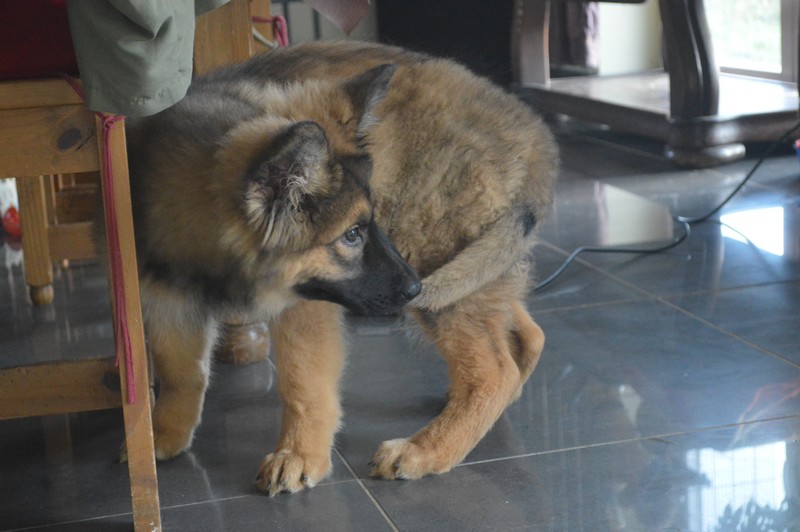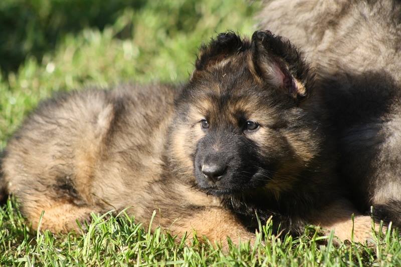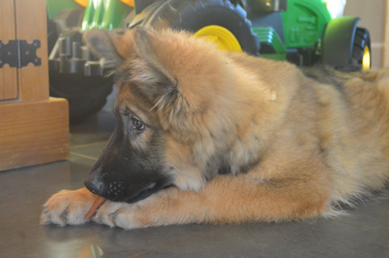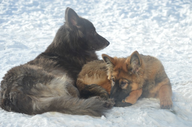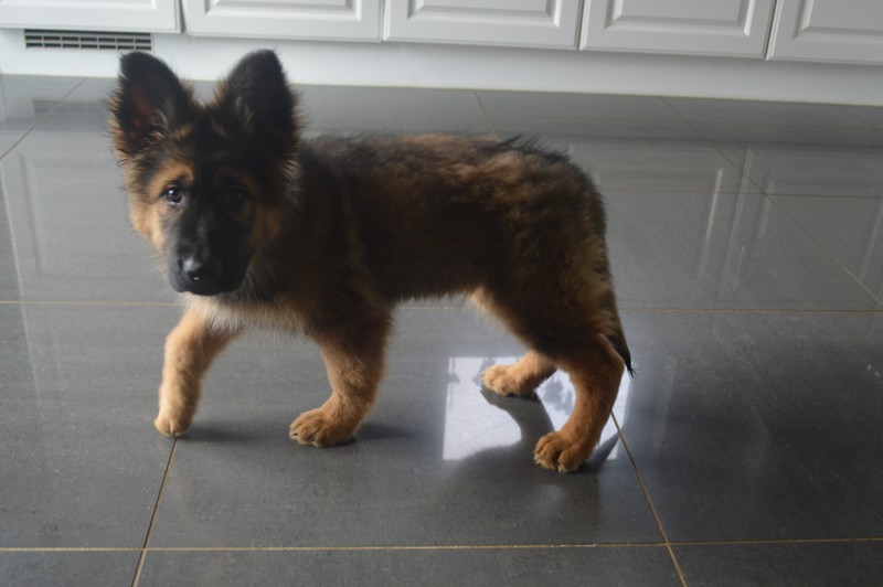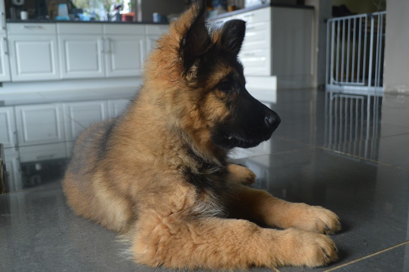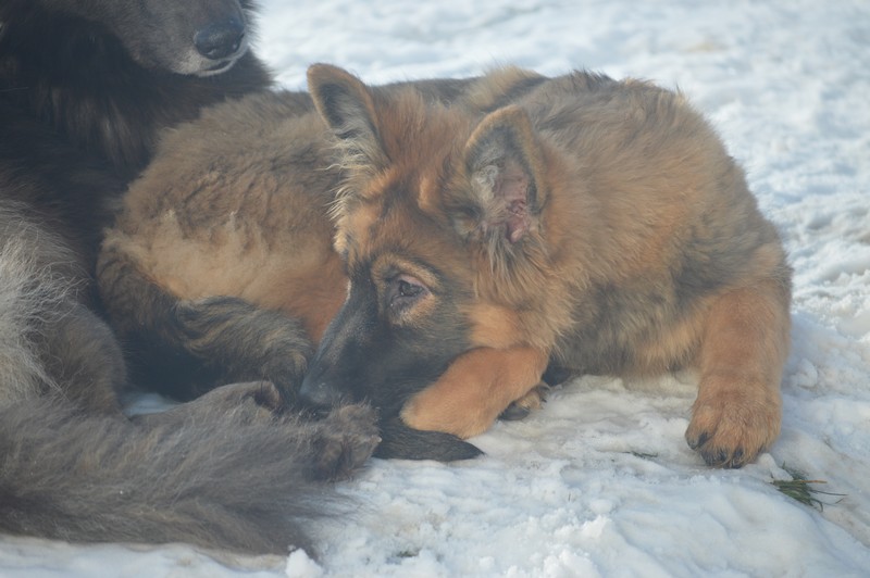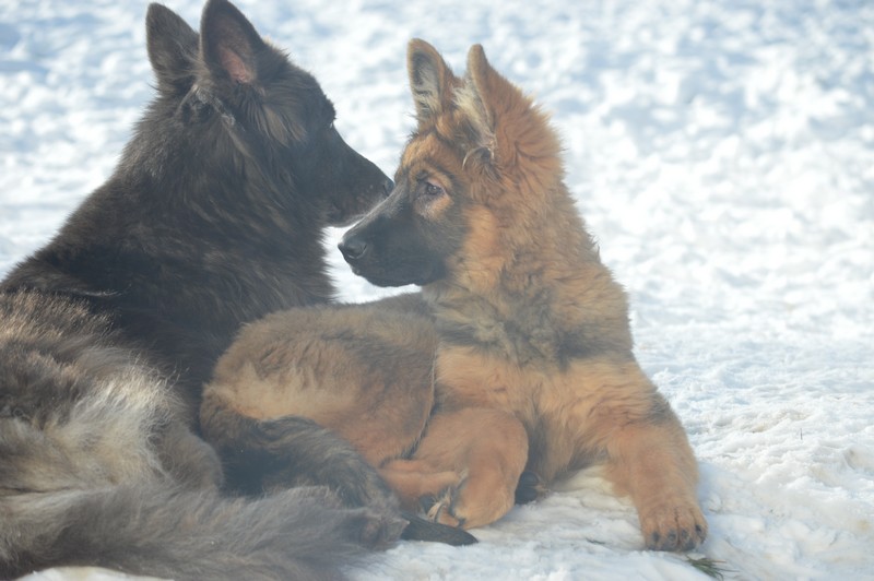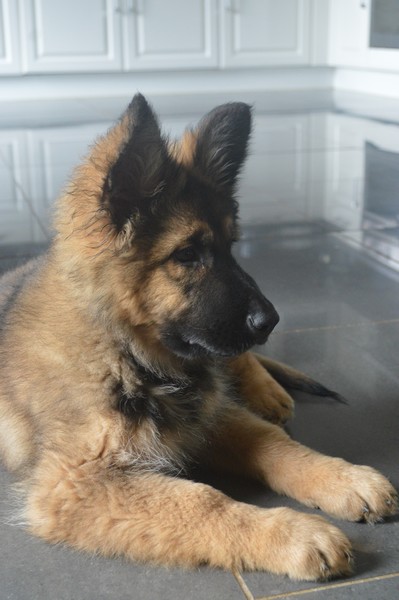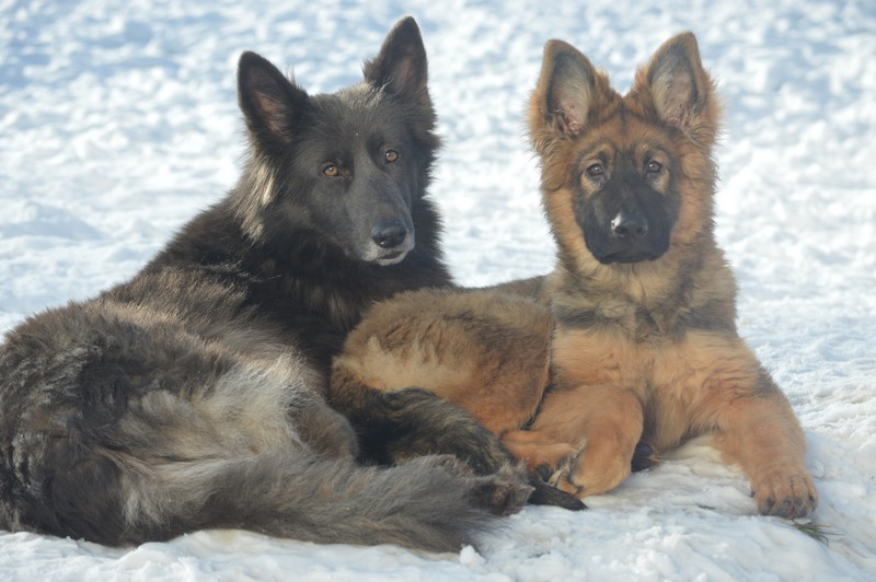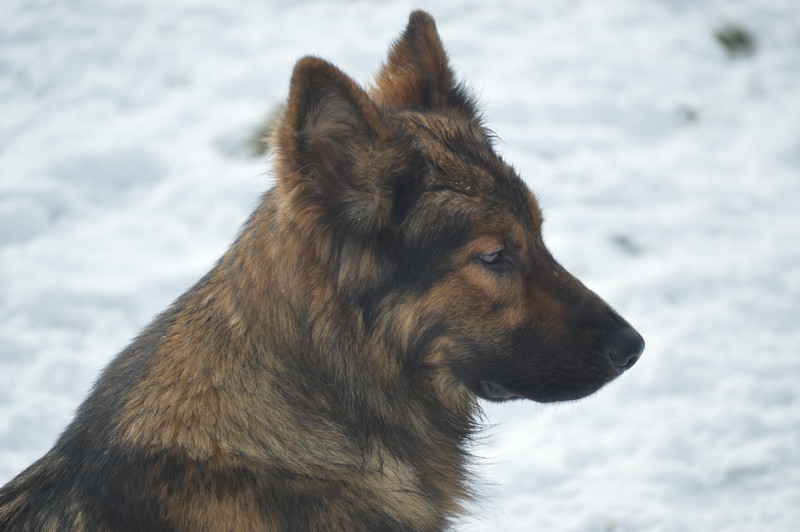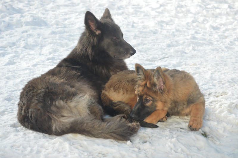 Notre Nessy ( et oui comme le monstre du Loch Ness) nous vient d’Allemagne, de chez Katia, élevage Vom Hof Grebe tout comme Jamaica. Nessy est arrivée chez nous fin 2015. C’est une femelle fauve charbonnée très grande et avec une très grosse ossature. Nessy est une chienne très attachante, mais aussi très énergique. Elle a besoin d’être canalisée pour s’épanouir. Elle demande également beaucoup d’attention. C’est aussi une chienne avec une énorme capacité d’apprentissage et d’écoute ( la lignée de travail de papa étant derrière ).