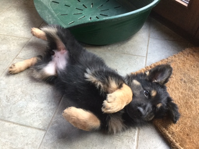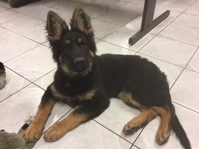 La petite Holly est une belle chienne noir et feu de la portée de Jamaica et Morpheus. Elle a rejoint la famille Michot sur Bruxelles et a deux BA pour compagne en plus d’être choyée par les enfants 😉