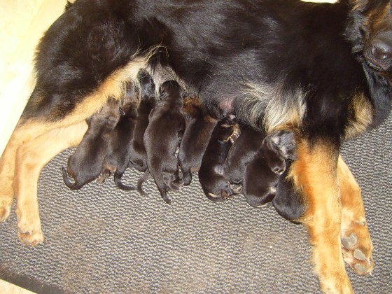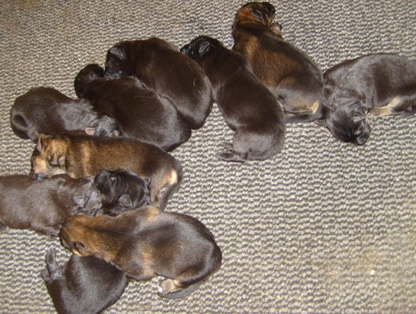La portée de Freya et Koda est notre première portée 😉 Nous avons eu de ce mariage 10 beaux bébés de toutes couleurs ( noir, noir et feu, fauve charbonné).