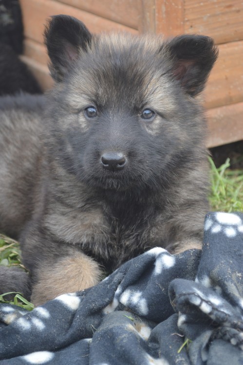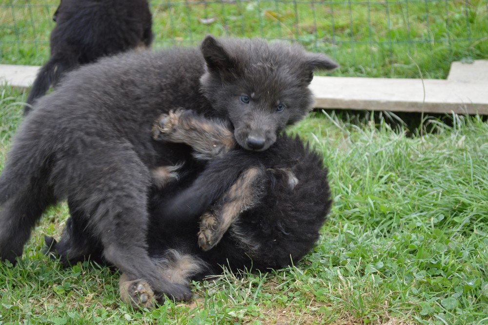 Notre deuxième portée de petits bleus à vu le jour en 2014, nous avons refait le mariage de Shanon avec Andro. Nous avons eu des couleurs assez différentes par rapport à l’année précédente : les chiots étaient de couleur bleu, bleu sable et fauve charbonné…